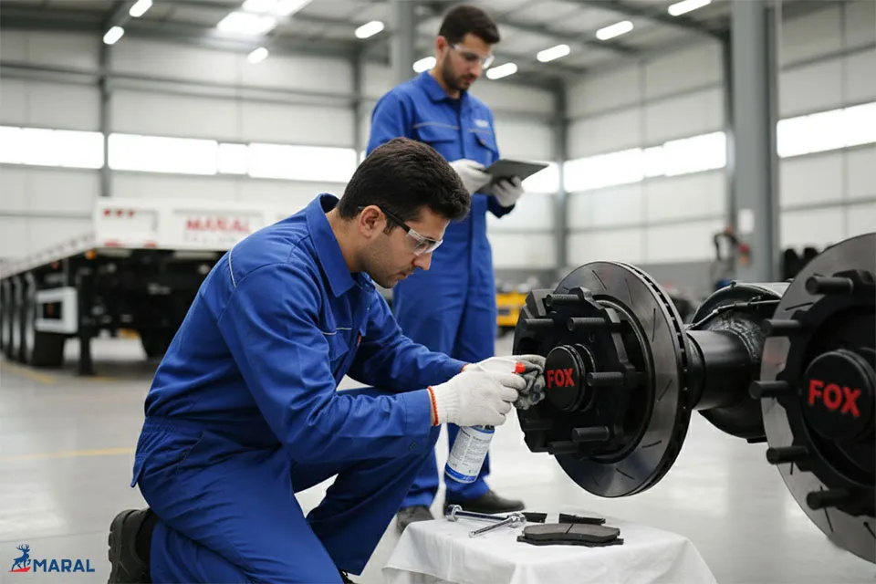 - لنتهای ترمز نو و باکیفیت: انتخاب لنت ترمز اصلی و استاندارد که تحمل حرارت بالا را داشته باشد، حیاتی است. توصیه تخصصی مارال تریلر استفاده از لنتهایی است که مطابق با استانداردهای OEM (تولیدکننده تجهیزات اصلی) باشند تا بهترین عملکرد را در شرایط باربری سنگین ارائه دهند.